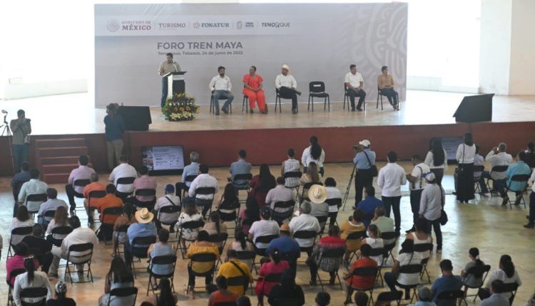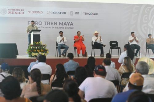 “La idea es que haya justicia, progreso y desarrollo en los pueblos por donde pase el Tren Maya” puntualizó al participar en el Foro Tren Maya, en el Centro de Convenciones de Tenosique, donde informó a la población de las obras del Tren Maya y los beneficios que, en específico, representa para las localidades donde habitan.