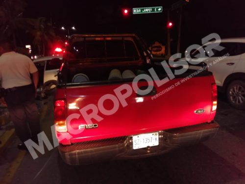 Se trata de un vehículo Ford tipo Pick Up de color rojo con placas del estado de Quintana Roo SZ1357K conducido por Erick C.M., de 46 años de edad, originario de Venezuela.