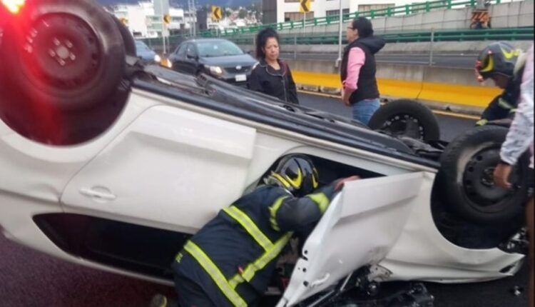 Una mujer sufrió la volcadura de su automóvil sobre el Segundo Piso del Periférico este martes 10 de julio de 2024, poco antes del mediodía, reportaron servicios de emergencia.