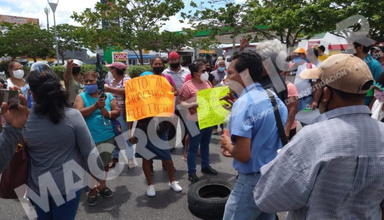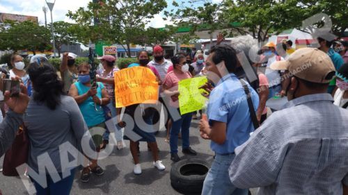 Cancún, Quintana Roo, 12 de mayo 2021.-Un grupo de vecinos bloquearon la avenida José López Portillo, a la altura de la Supermanzana 59 y Región 93, donde solicitar una mesa de negociación con autoridades municipales y estatales.