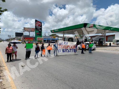 Los ciudadanos con cartulinas fluorescentes pidieron una mesa de negociación con autoridades locales, también exhibieron una manta con la leyenda “Fuera Corrupción”.