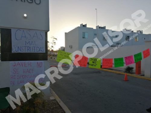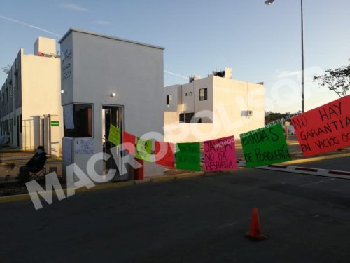Cancún, Quintana Roo, 14 de diciembre 2020.-Esta mañana se manifestaron vecinos de Paseos Kusamil, para exigir que la constructora tome cartas en el asunto para atender las demandas que tienen respecto a las casas que les entregaron, ya que no cumplen con las garantías que les prometieron al momento de venderselas.