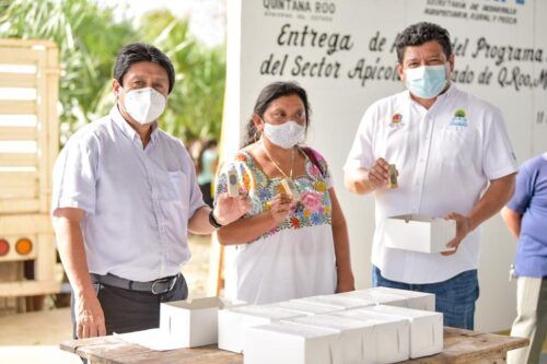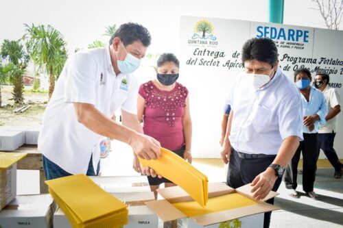 La finalidad es fortalecer la producción apícola del municipio, y con este apoyo son beneficiados 39 trabajadores del campo tulumnense, productores apícolas de las comunidades de Chanchén, San Silverio, San Juan, Sahcabmucuy y Yaxché, quiénes recibieron 2 mil 664 kilogramos de azúcar, 3 mil 305 hojas de cera, 132 kilogramos de alimento proteico, 152 colmenas pobladas y 321 abejas reinas, reconociendo que el sector apícola de Tulum produce miel de calidad.