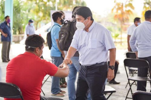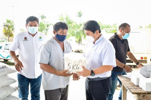 Tulum, Quintana Roo, 12 de febrero de 2021.- El presidente municipal de Tulum, Víctor Mas Tah, atestiguó la entrega de apoyos para apicultores de cinco comunidades rurales del municipio, junto con el secretario de la Secretaría de desarrollo Agropecuario, Rural y Pesca (Sedarpe), Luis Torres Yánez, en representación del gobernador del estado, Carlos Joaquín González.