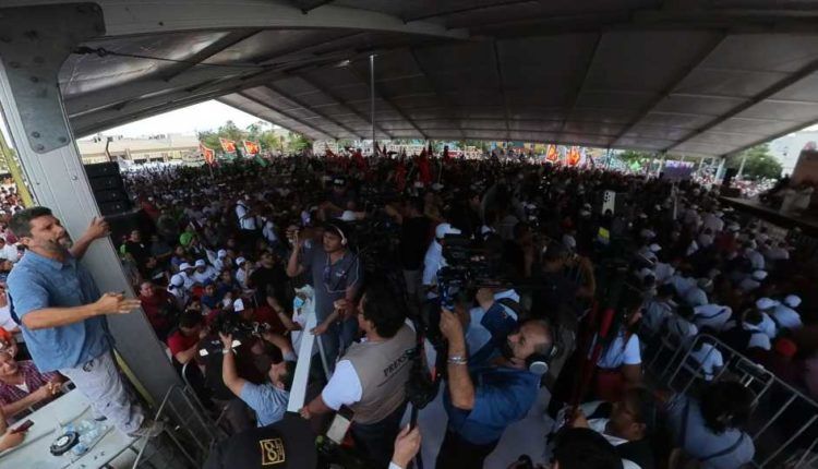 Esto llamó la atención de los medios de comunicación presentes en el evento, que comenzaron a entrevistarlo en el lugar. Sin embargo, esto generó molestia en un grupo de morenistas, quienes comenzaron a corear distintas consignas, incluso con megáfono, para ahogar sus palabras.