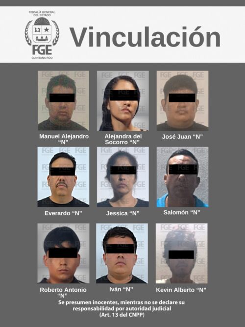 Cancún.- La Fiscalía General del Estado informa que, después de aportar datos de prueba, obtuvo por separado de jueces de control, la vinculación a proceso de siete masculinos y dos femeninas, por hechos posiblemente constitutivos de delitos contra la salud en su modalidad de narcomenudeo, en este municipio.