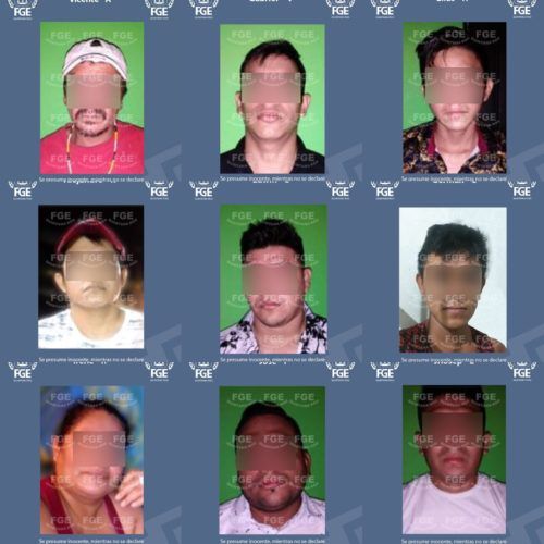 Los imputados, José “A”, Neltri “L”, Alejandro “R”, Jesús “C”, Germán “C”, Abraham “B”, Irene “R”, José “I”, Carlos “G”, Vicente “A”, Edwin “C”, Jhoser “E”, Elías “H”, Gabriel “V” y Maximiliano “D” fueron detenidos en Tulum, tras cumplimentar órdenes de cateo por policías de investigación apoyados por personal del Grupo de Coordinación para la Construcción de la Paz y Seguridad conformado por la Policía Quintana Roo, SEDENA, Marina y Guardia Nacional.