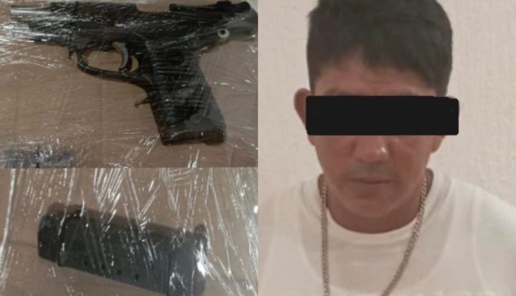 La detención se llevó a cabo en la carretera Cancún- Mérida, en el Km 288; y se aseguró un arma de fuego tipo pistola calibre 9 mm, con cargador abastecido con seis cartuchos útiles.