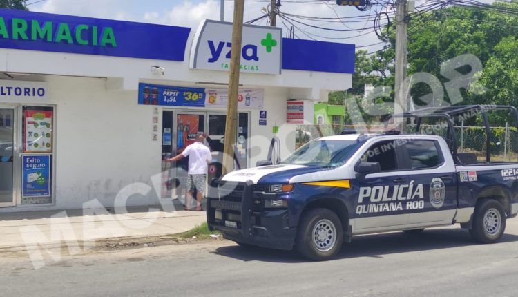 Playa del Carmen, a 29 de julio de 2021.- Solitario pistolero asaltó violentamente la farmacia de la cadena Yza ubicada en la colonia Bellavista, llevándose un botín de mil 400 pesos y un teléfono celular del trabajador, la Policía Quintana Roo llegó solo a tomar datos de lo ocurrido.
