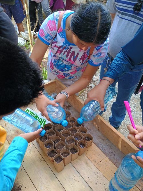 La visita también incluyó actividades centradas en la problemática de los micro-plásticos, destacando sus impactos y posibles soluciones. Los estudiantes participaron también activamente en la siembra de semillas de albahaca en el huerto de Tumben Lu’um, explorando así la conexión entre la agricultura y el equilibrio ecológico.