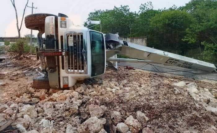 Felipe Carrillo Puerto. – La tarde de ayer, una grúa asignada a las obras de construcción del nuevo hospital de esta ciudad, ubicado sobre la carretera federal 295 en la salida a Valladolid, terminó volcada al intentar mover una estructura metálica.