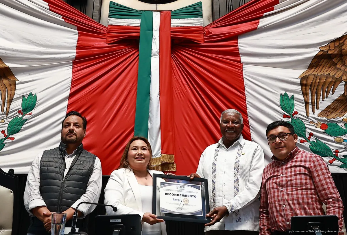 Desde tribuna, la diputada Lilia Mis Martínez, presidenta de la Comisión de Derechos Humanos de la Legislatura, subrayó la labor de las y los integrantes del movimiento rotario, cuyo objetivo principal es brindar servicio humanitario, fomentar la integridad y promover la paz mundial.